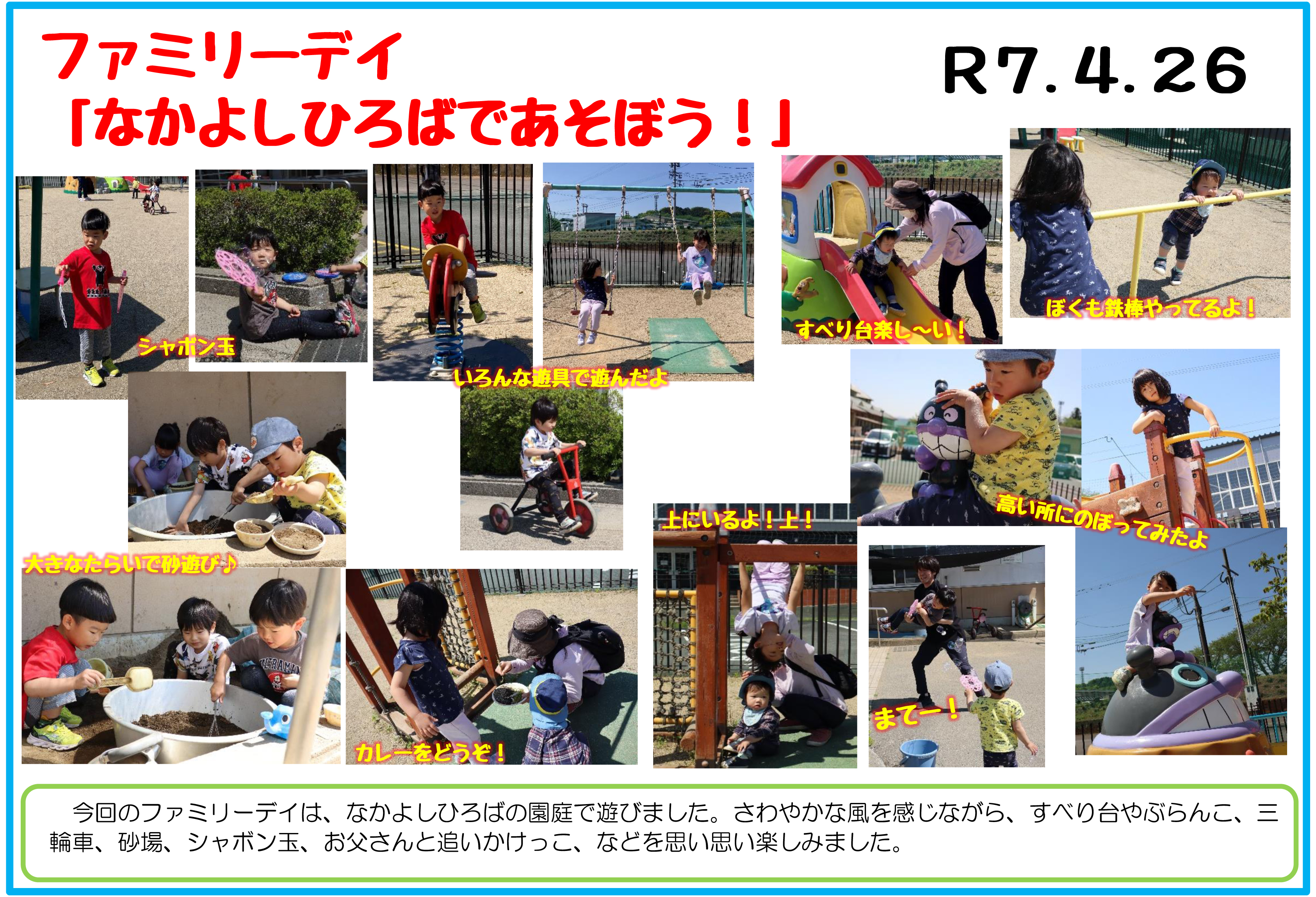 R7.4.26 ファミリーデイ「なかよしひろばであそぼう!」