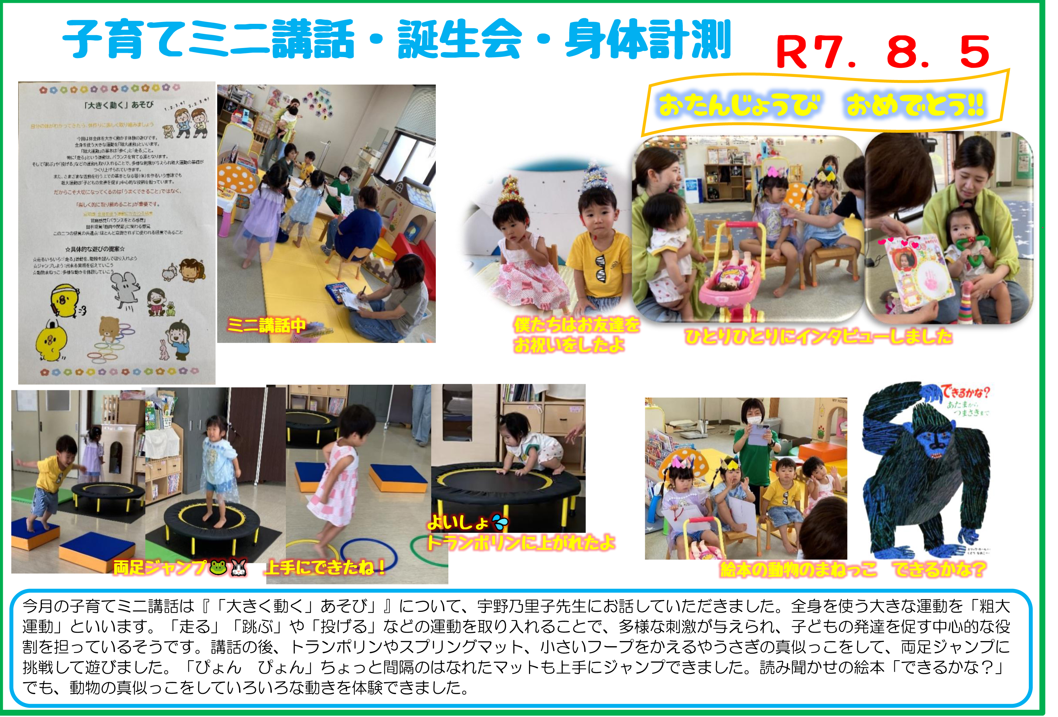 R7.8.5 子育てミニ講話・誕生会・身体計測