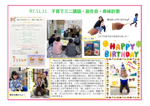 R7.11.11 子育てミニ講話・誕生会・身体計測
