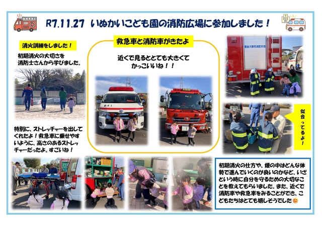 R7.11.27 いぬかいこども園の消防広場に参加しました!