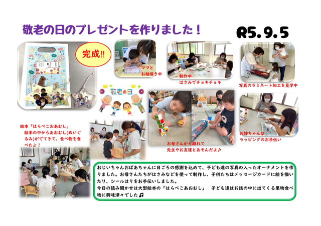 2025年9月の、ドキュメンテーション(子ども達の活動時の写真等)です。