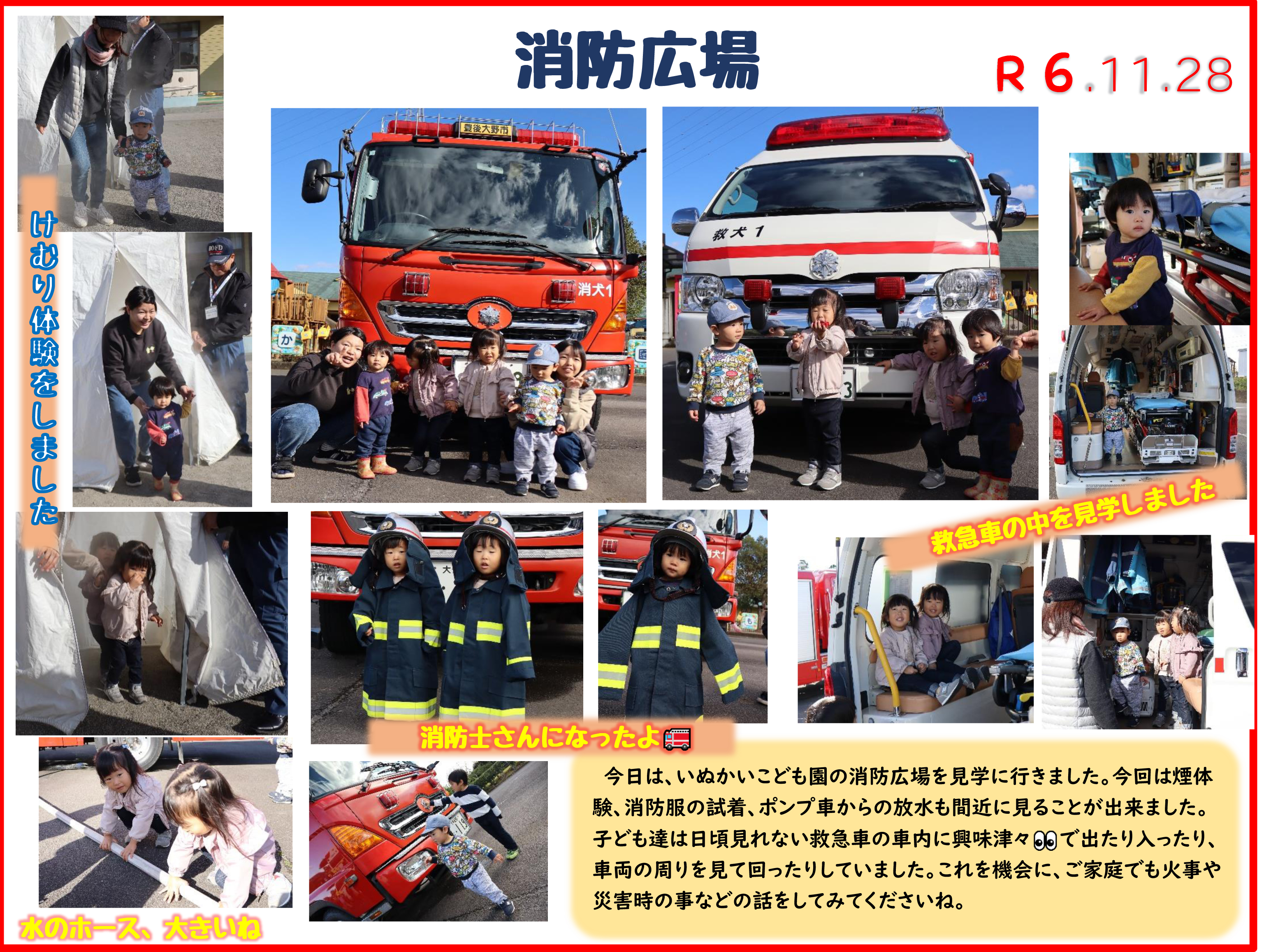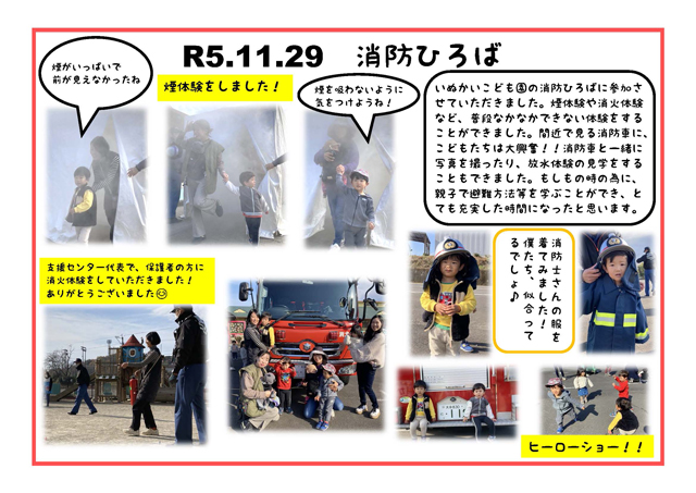 R7.11.27 いぬかいこども園の消防広場に参加しました!