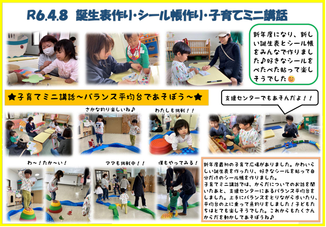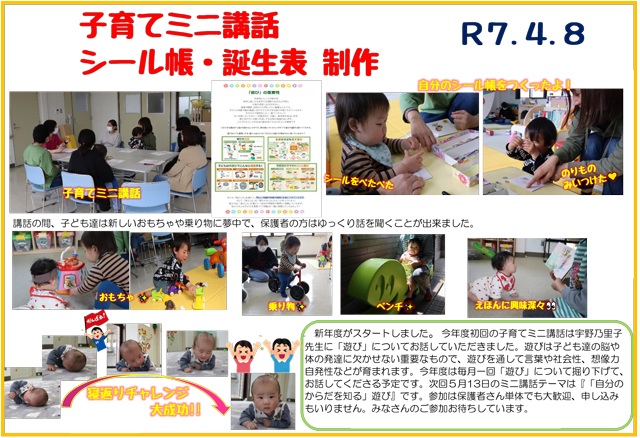 R7.4.8 子育てミニ講話・シール帳・誕生表制作