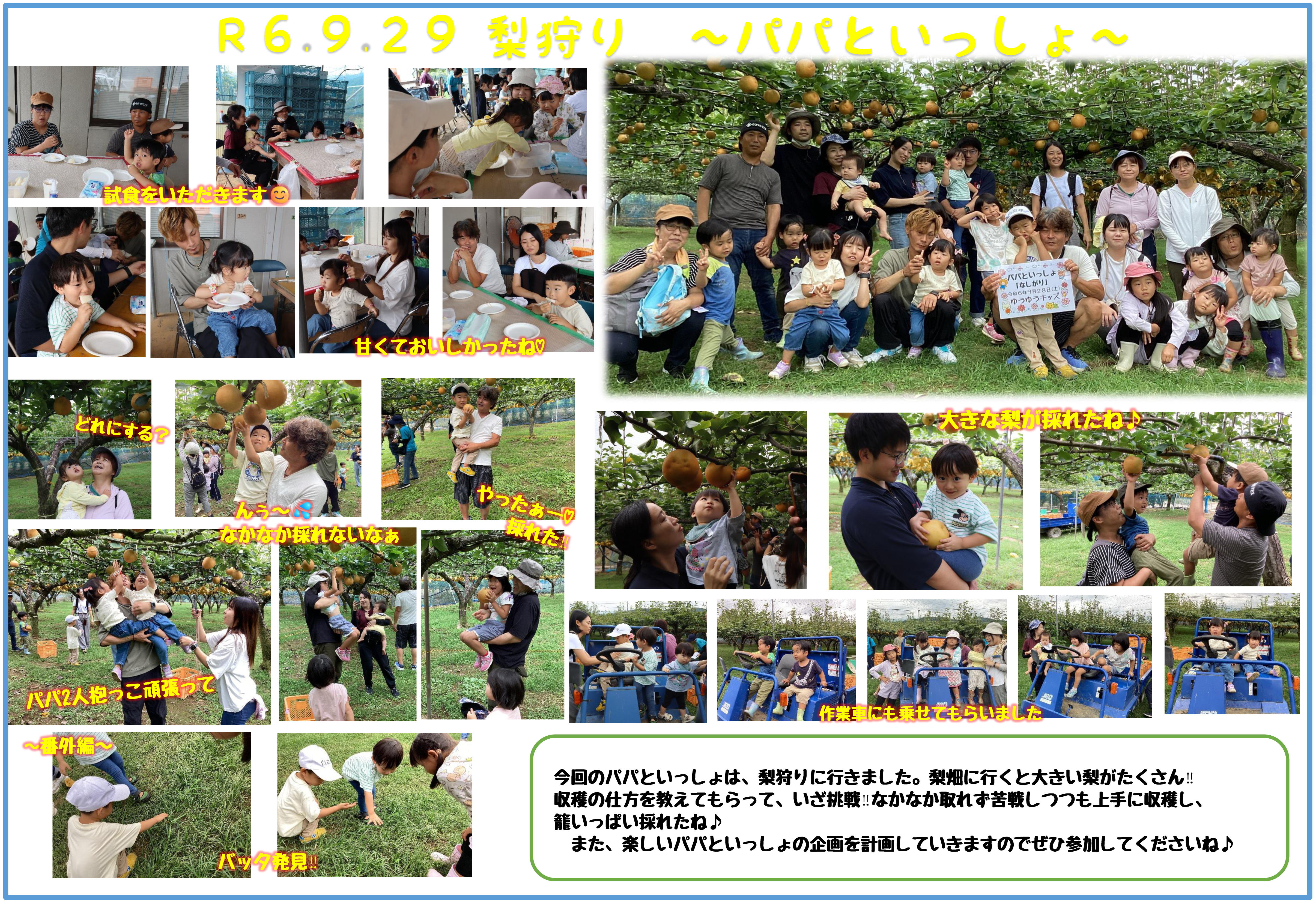 また「パパといっしょ」で楽しめる企画をしたいと考えてます。次回をお楽しみに♪