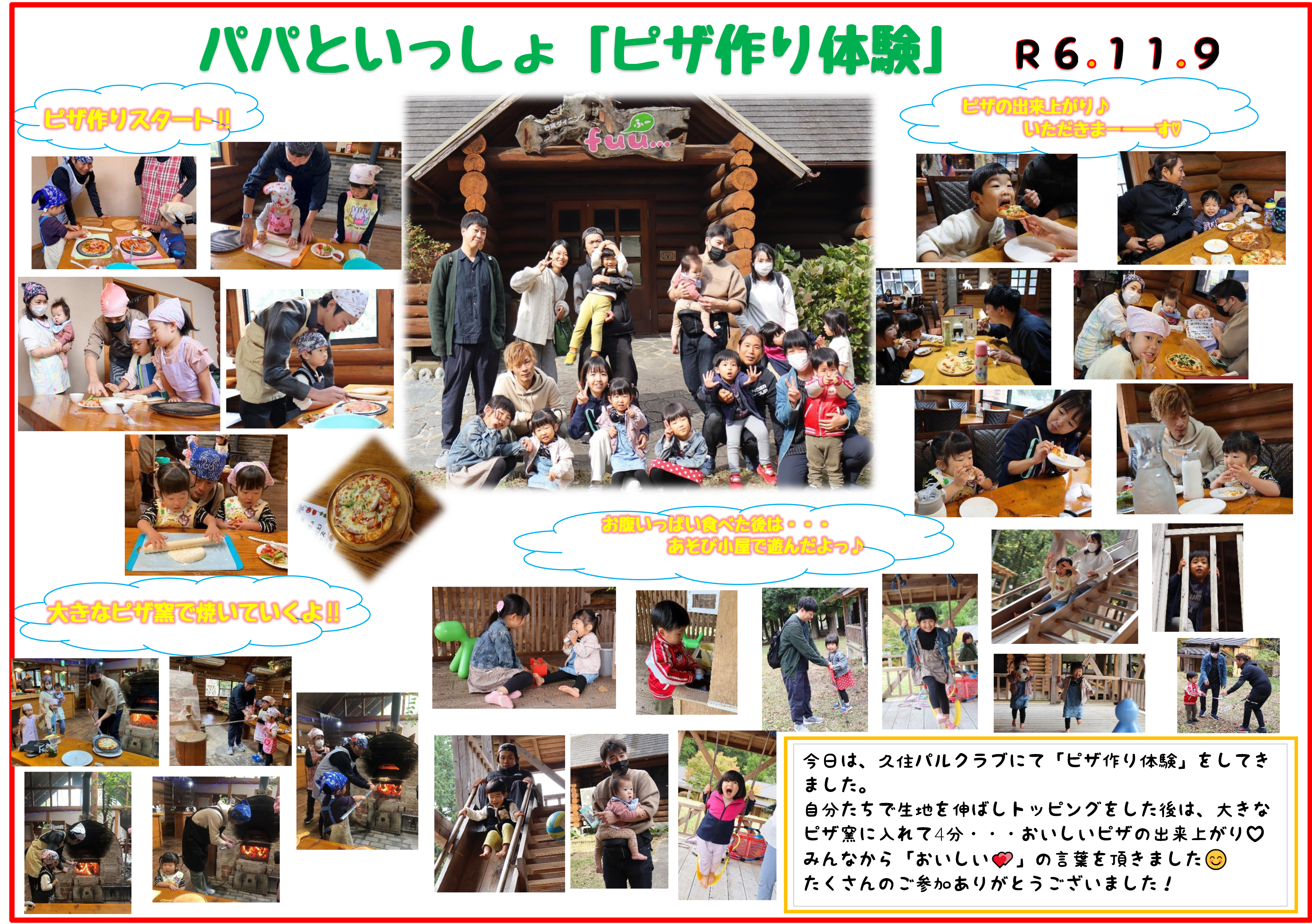 第2回目となる今回は、パパといっしょに『みんなでピザづくり体験』を行います。紅葉の高原を感じながらドライブをしたり、ピザづくりを体験したり、気持ちいい温泉に入ったりして秋を満喫しましょう!たくさんのご参加をお待ちしています♪