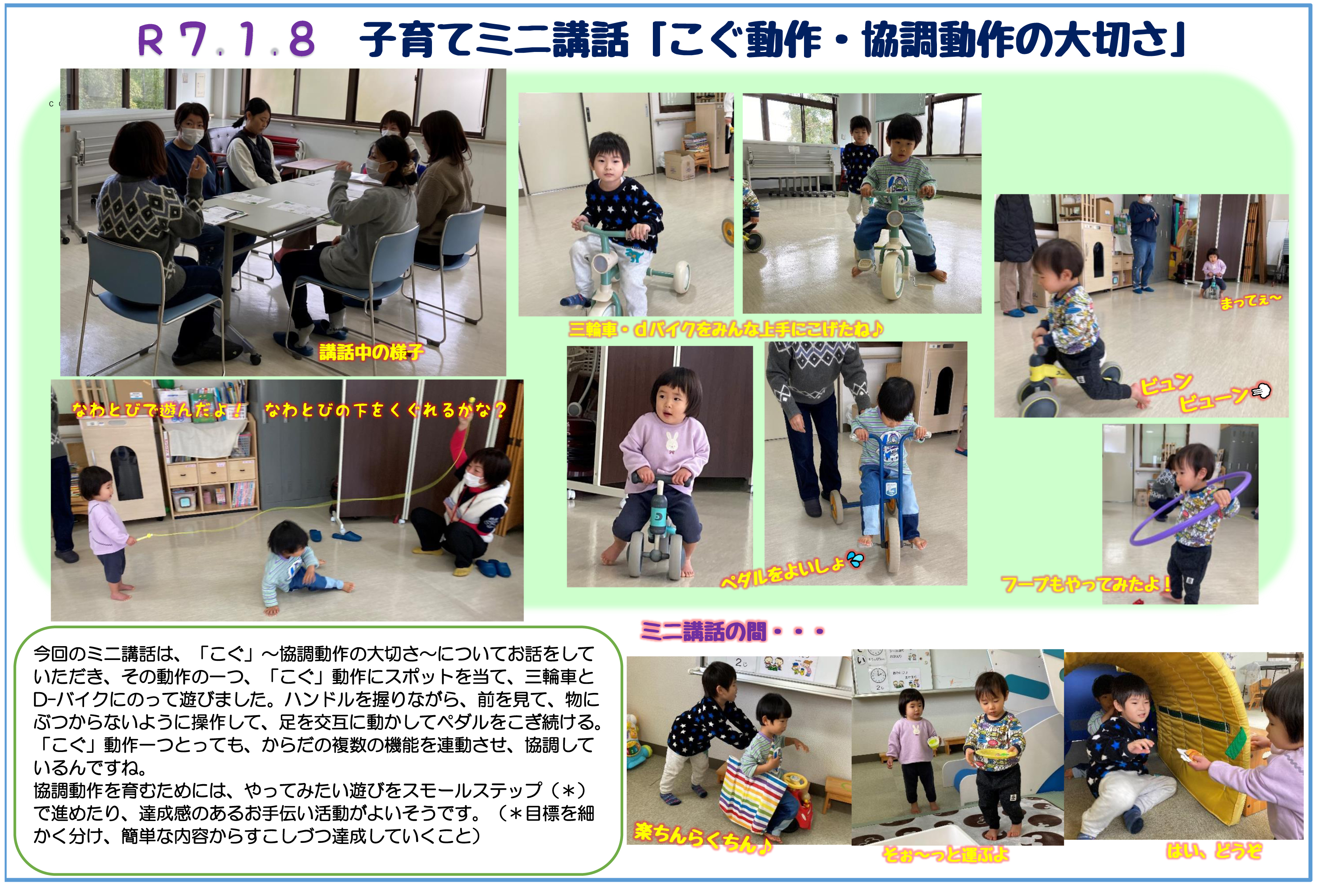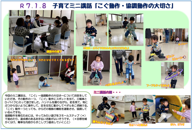 R7.1.8 子育てミニ講話「こぐ動作・強調動作の大切さ」