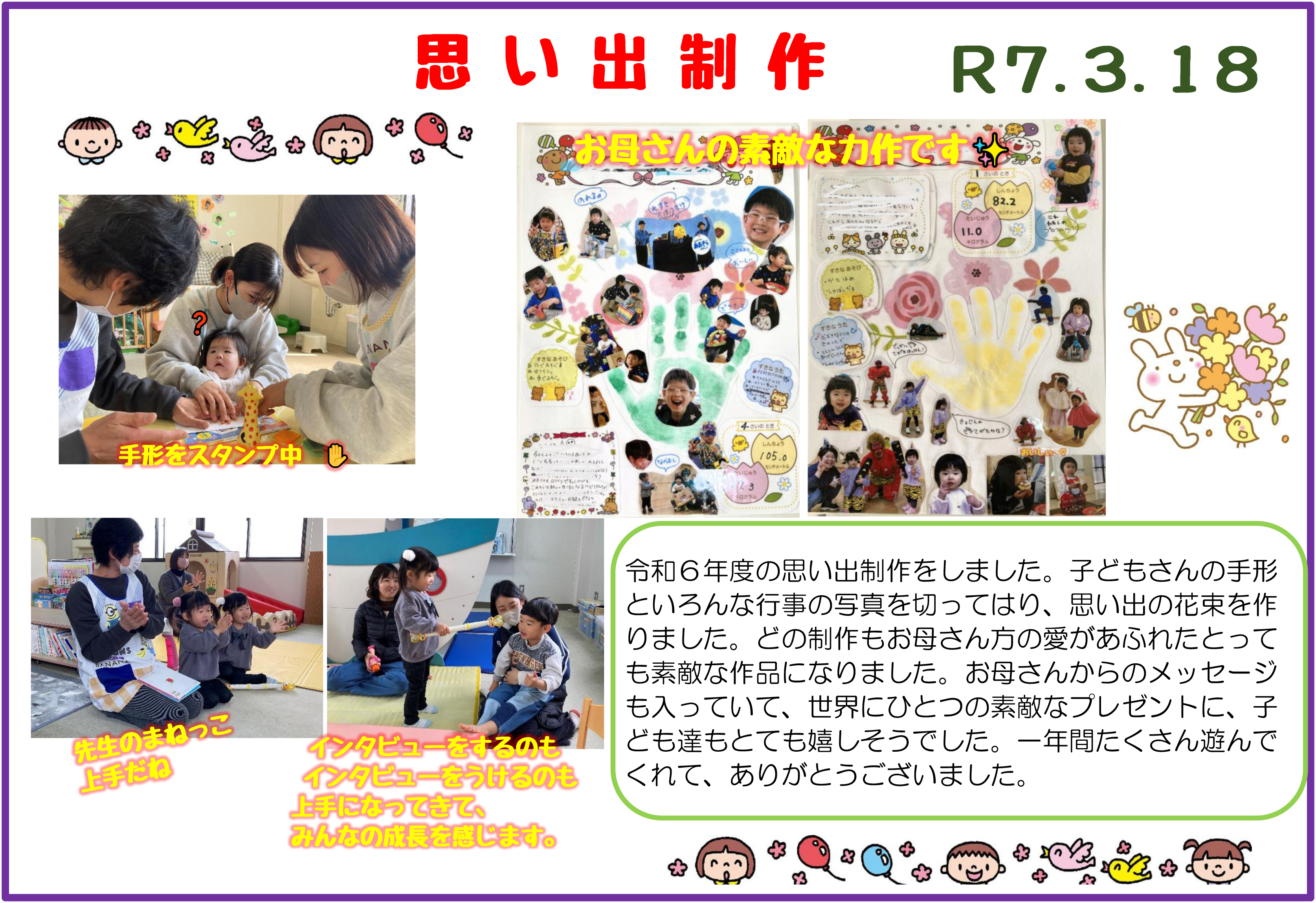 2025年3月の、ドキュメンテーション(子ども達の活動時の写真等)です。