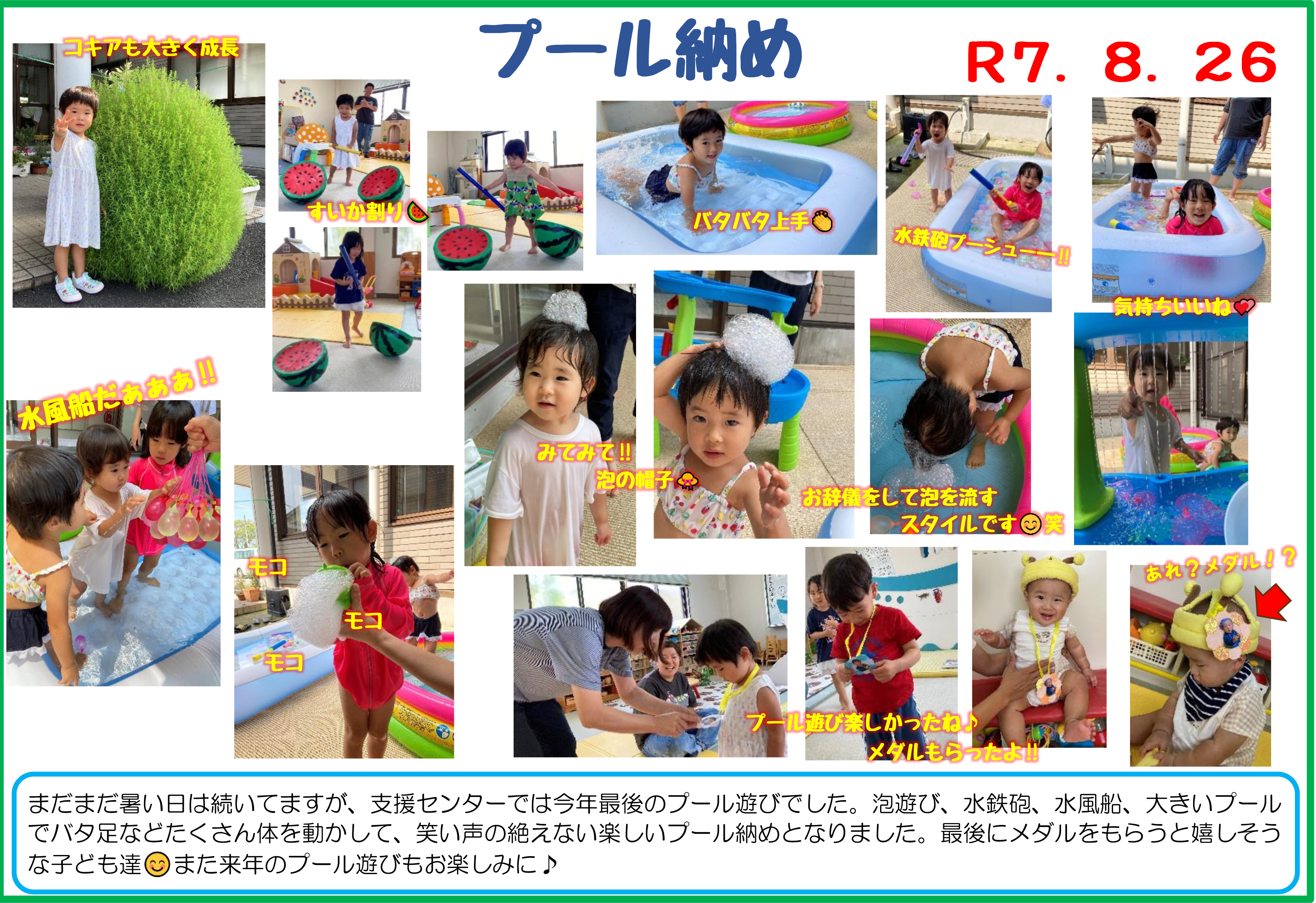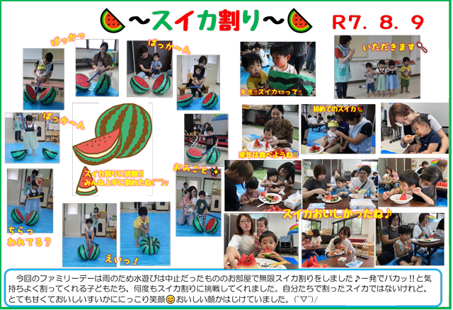 2025年8月の、ドキュメンテーション(子ども達の活動時の写真等)です。