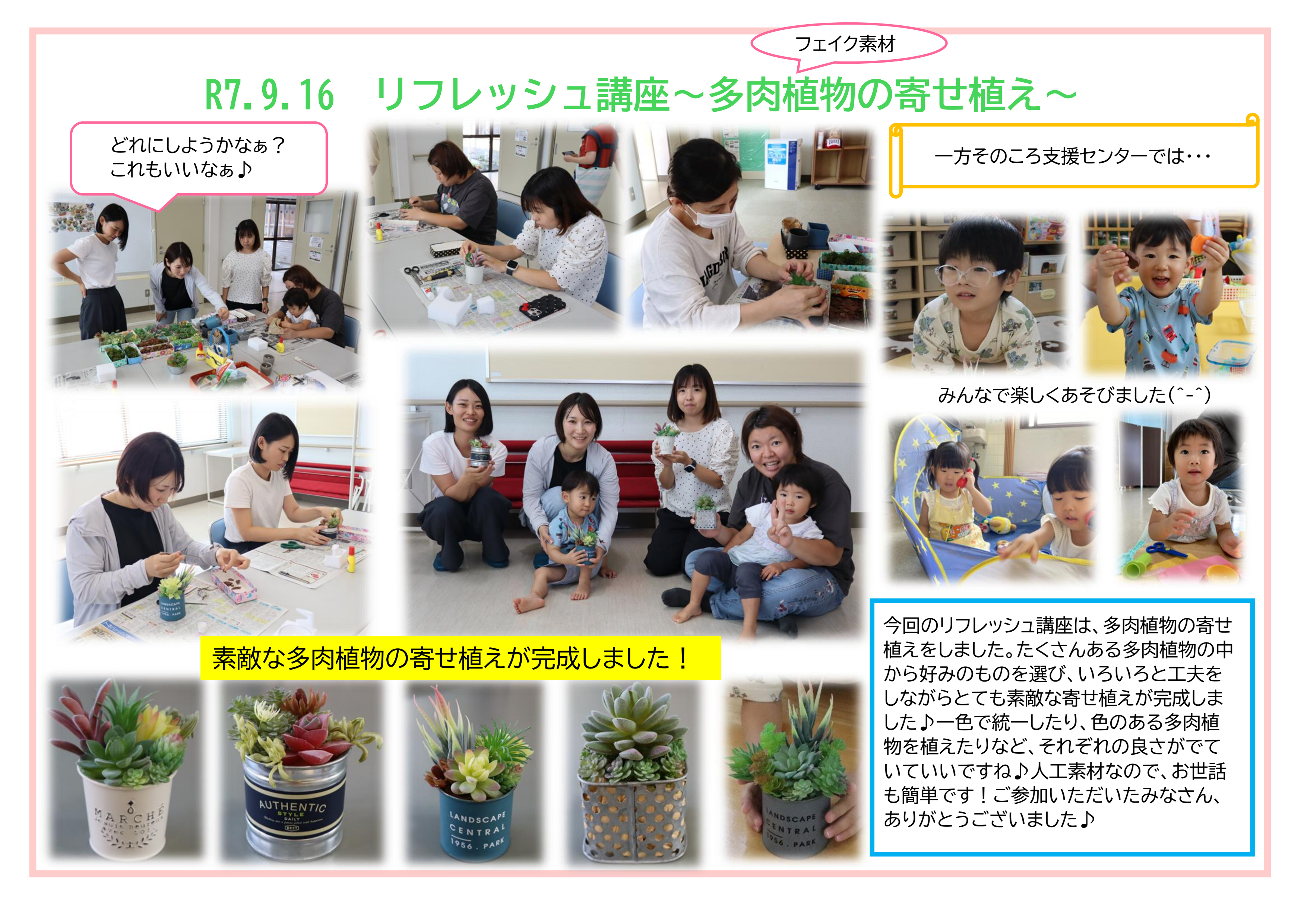 R7.9.16 リフレッシュ講座 ~多肉植物の寄せ植え~